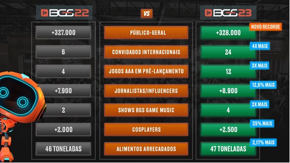 A Brasil Game Show não para de crescer e se reinventar. O reflexo disso pode ser visto em uma simples comparação com a edição 2022, que já tinha números bastante expressivos. Reiterando a importância da feira tanto para a indústria quanto para os visitantes, entre os aspectos relevantes que aumentaram em números absolutos nesse ano estão: