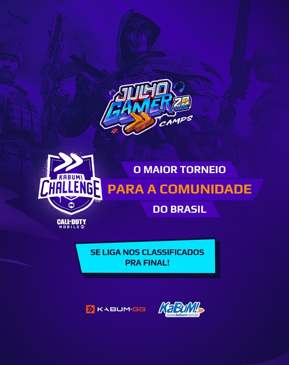 O Challenge COD Mobile é um dos cinco torneios realizados pelo KaBuM! durante o Julho Gamer, um mês inteiro de campeonatos, promoções, ofertas e muitas outras iniciativas pensadas especialmente para clientes de todas as tribos. São competições focadas em CS:GO, VALORANT, Street Fighter 6, Call of Duty Mobile e League of Legends. As inscrições para os campeonatos já estão abertas para todos os gamers, do mobile ao PC, e em diferentes níveis de habilidade. As premiações somam 84.000 reais para a comunidade gamer.
