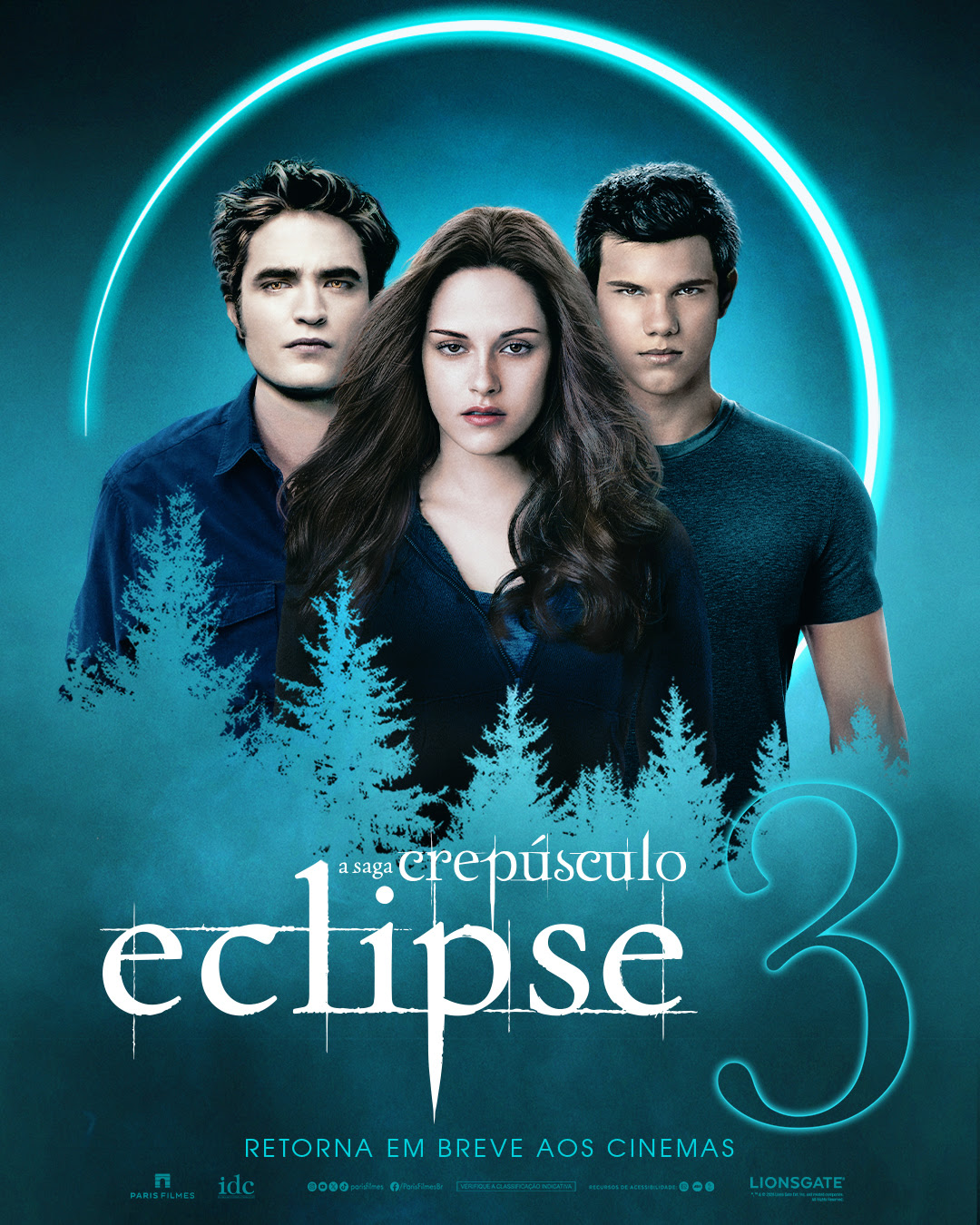 A Paris Filmes vai reexibir nos cinemas "Eclipse", terceiro filme da saga Crepúsculo, adaptação do best-seller de Stephenie Meyer. A produção volta às telonas em uma reexibição comemorativa a partir de 11 de junho. Baixe o cartaz neste link.