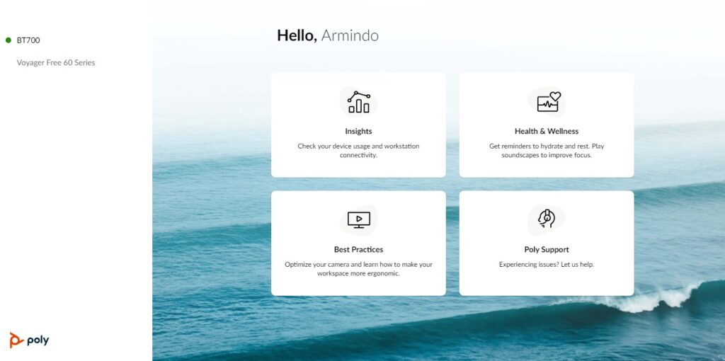Os fones de ouvido Voyager Free 60+ UC são certificados para funcionar com plataformas de reunião populares, como Microsoft Teams e Zoom, e podem ser gerenciados centralmente de qualquer lugar do mundo. Com sua matriz de três microfones, esses fones de ouvido garantem que a voz do usuário seja clara, enquanto a tecnologia WindSmart ajuda a minimizar o ruído de fundo durante as chamadas.