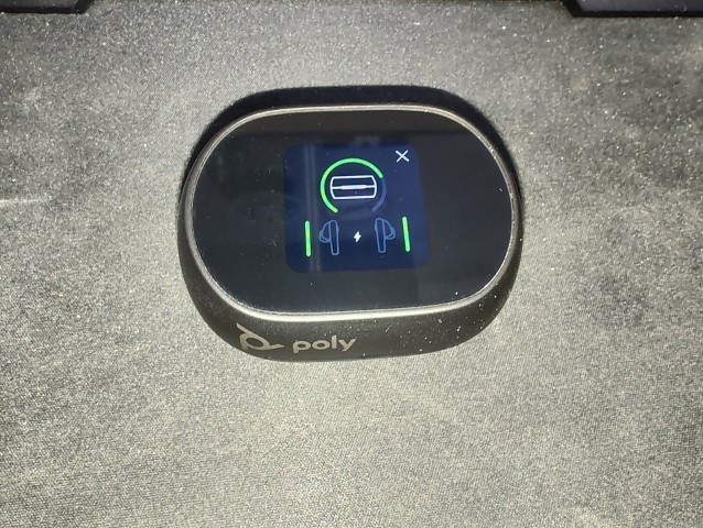 Os controles na tela sensível ao toque do estojo de carregamento oferecem facilidade de uso, permitindo ao usuário ajustar o volume, silenciar chamadas e alternar entre dispositivos de forma rápida e conveniente. O carregamento rápido fornece uma hora adicional de conversação a cada 15 minutos e recarrega completamente os fones de ouvido duas vezes, proporcionando até 16,5 horas de uso ativo de chamadas.