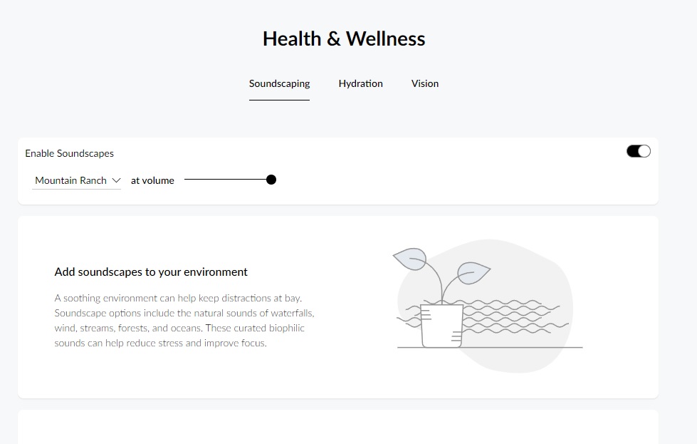 E há até, funções interessantes, como por exemplo a possibilidade de ouvir sons relaxantes enquanto trabalha e até avisos para você beber água ou parar de olhar o monitor por alguns segundos para descansar a vista.