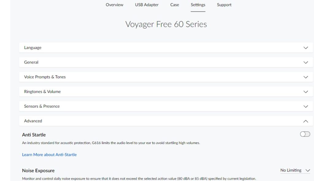 Mas se você quiser, através de um app fornecido de forma gratuita você pode fazer ajustes finos, porém nos nossos testes não foi possível usar o idioma português do Brasil. Entrando nas configurações avançadas é possível até configurar níveis aceitáveis de volume a fim de evitar problemas com exposição excessiva a sons altos.