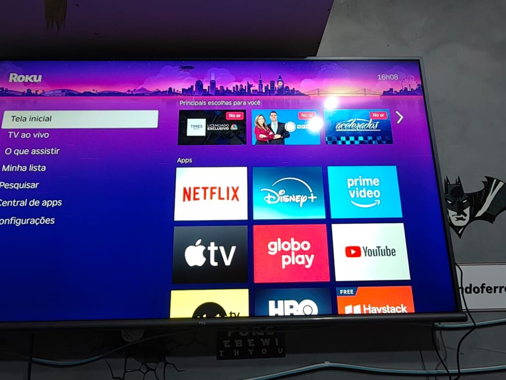 A interface Roku é conhecida por ser intuitiva e limpa. Logo na configuração inicial, o stick acompanha um setup “plug-and-play”: basta inserir na TV, parear o controle, conectar à rede Wi-Fi e atualizar o software, processo que leva cerca de 10 minutos.