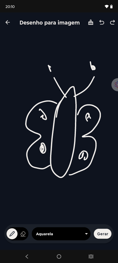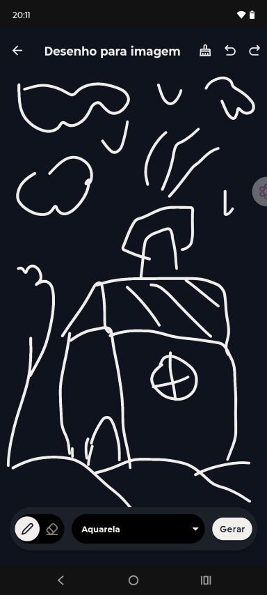 Mas o recurso mais divertido e que levei um bom tempo fazendo várias criações é o desenho para imagem. Funciona assim, você faz um rabisco na tela, escolhe um formato: