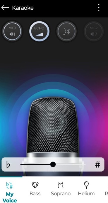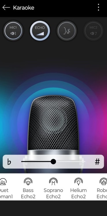Com isso você pode aumentar ou diminuir o echo, pode usar um interessante recurso que procura diminuir o vocal de músicas que não são preparadas para Karokê e aplicar quase uma dezena de efeitos na sua voz. Ela pode ficar fina, grossa, parecendo um robô, entre outros.