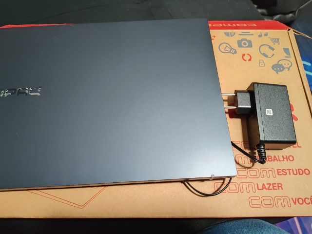 Outro detalhe que me chamou atenção é também a leveza do carregador. Diferente de alguns que tem um módulo extra pesado aqui é basicamente uma tomada. Recomendo que você deixe uma noite dando uma carga completa antes de abrir o notebook.