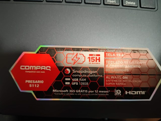 Ele possui um processador Qualcomm Snapdragon 7c Gen 2 e tem 4 GB, memória RAM soldada de 4 GB e o armazenamento UFS de 128 GB. O laptop também tem uma tela de 15,6 polegadas com resolução de 1920 x 1080 pixels, bordas finas e resolução HD antirreflexiva. Bateria de 45 Wh, alem de uma webcam de HD 720p (com tampinha de deslize para privacidade) e um teclado ABNT2 (com ç) e resistente a derramamento de líquido.